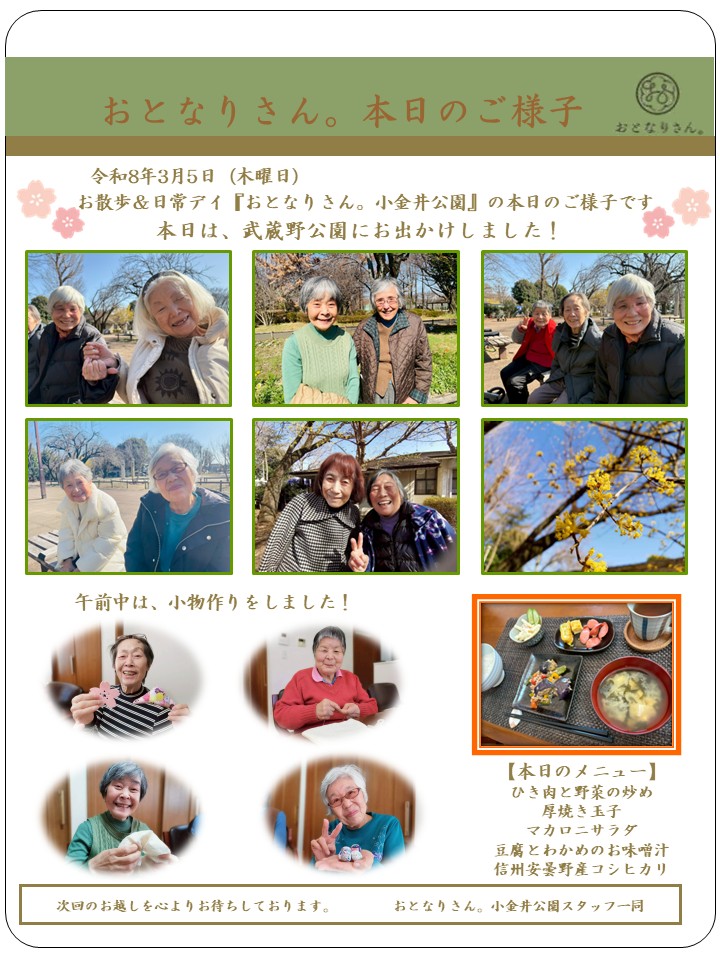 お散歩&日常デイ おとなりさん。小金井公園