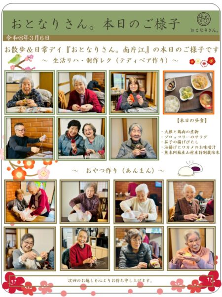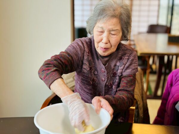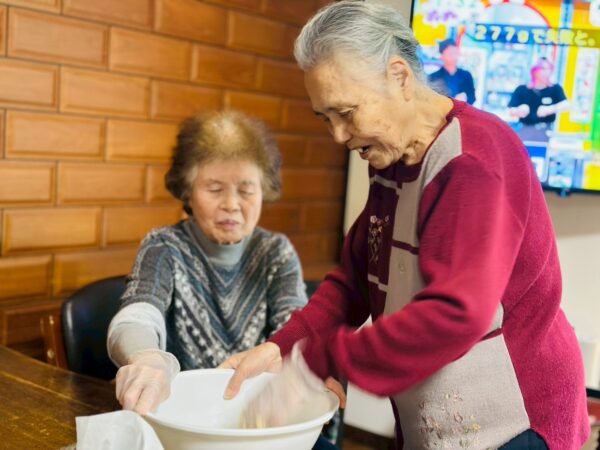 今日は雨の日だったので室内で過ごしましたが、皆さん楽しそうにおやつ作りをしたり、脳トをして