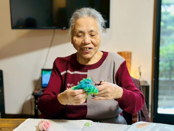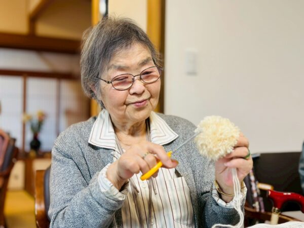 午前中の制作活動は、毛糸を巻いてテディベア作りをしました。