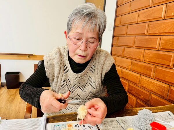 午前中の制作活動は、ボンボンテディベアです。