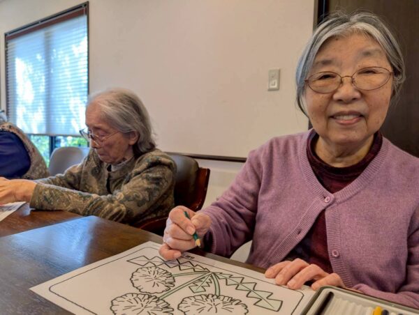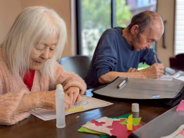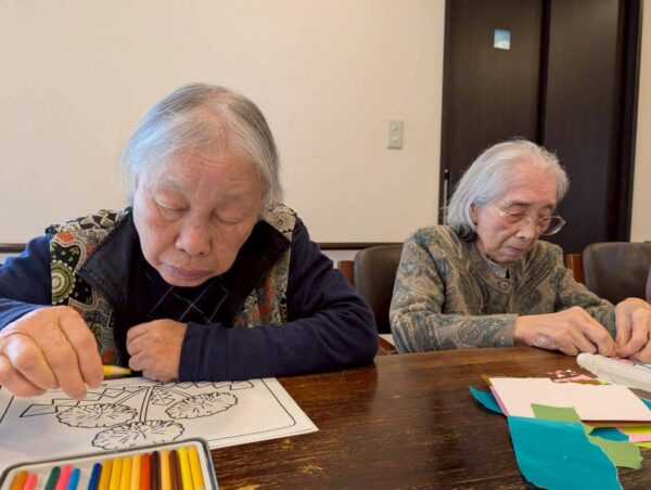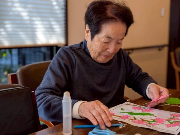 午前中の活動はちぎり絵制作を行いました。