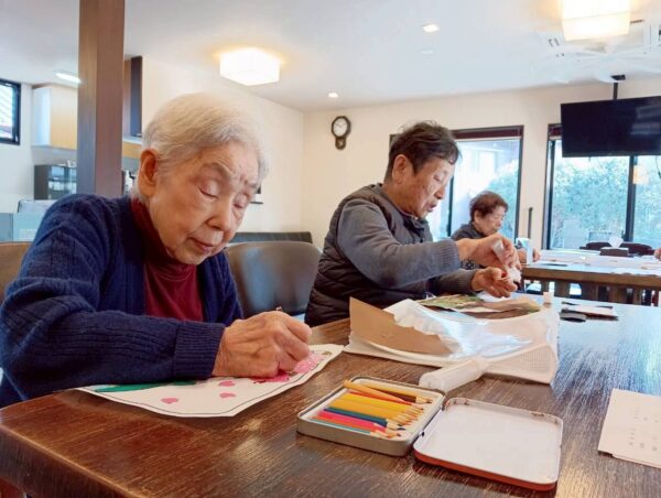 指先を使う為集中されていました。ご利用者様同士で助け合う場面も見られました。
