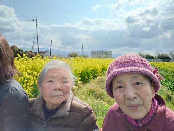 鮮やかな黄色い花に囲まれて、ご利用者様も「春が来たみたいで綺麗ね」と、寒さを忘れるほどの