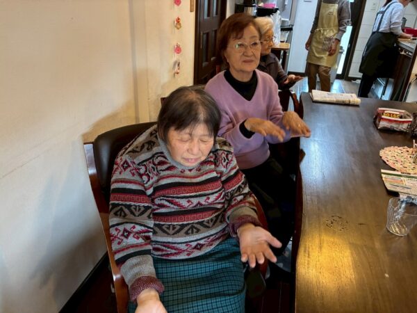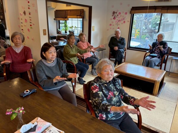 今日も朝一番におとなりさん。体操で身体を動かしていただきました。