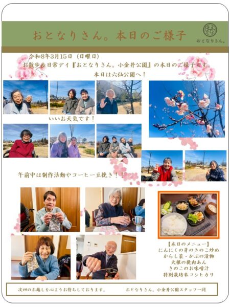 今日は天気が良く、暖かさを感じる気持ちのよい一日になりましたね。