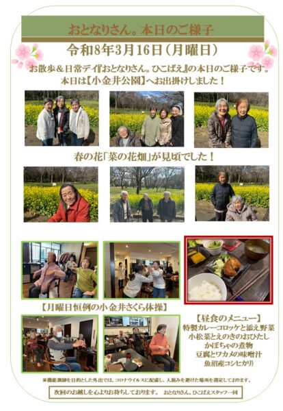 小金井市のデイサービス~お散歩&日常デイ~ おとなりさん。ひこばえ