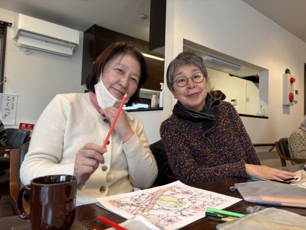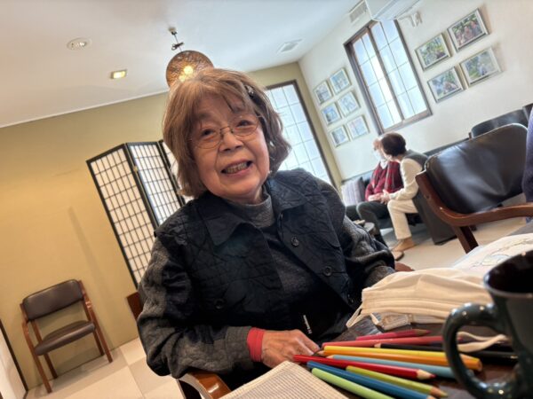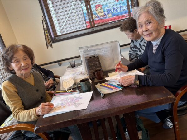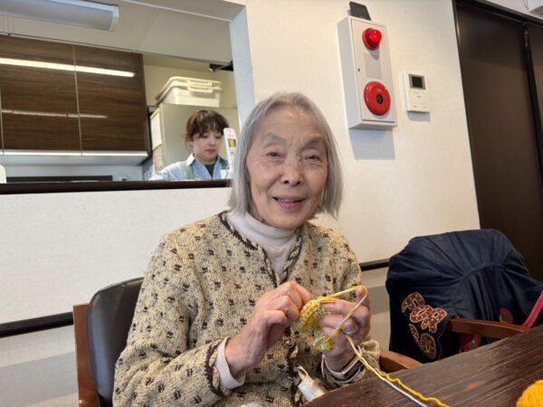 午前は趣味や制作の時間です。編み物や切り絵など、それぞれにお好きな活動をして過ごされました。