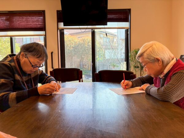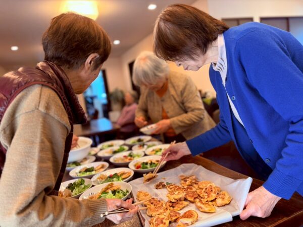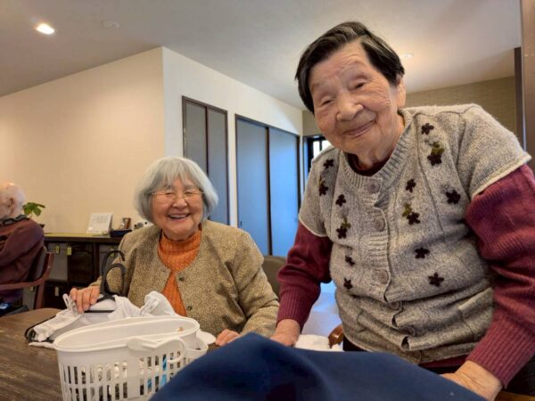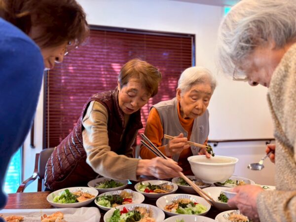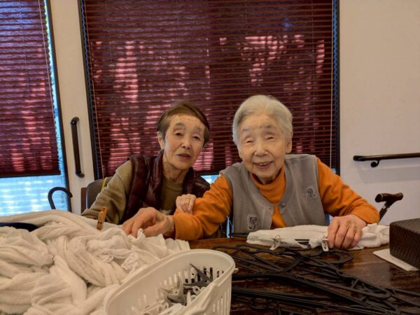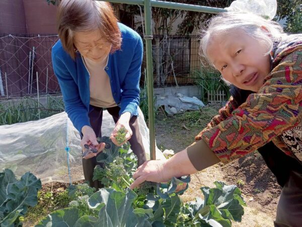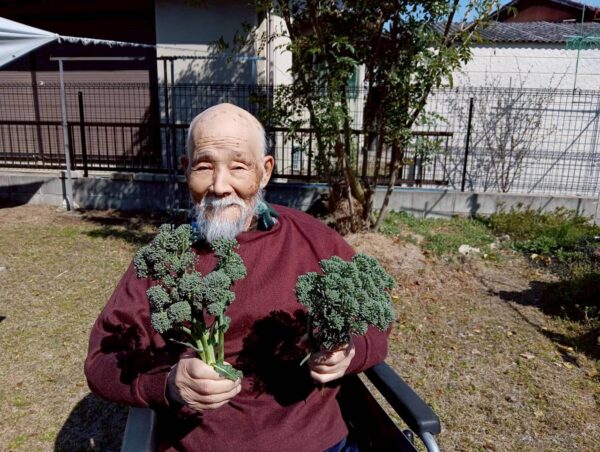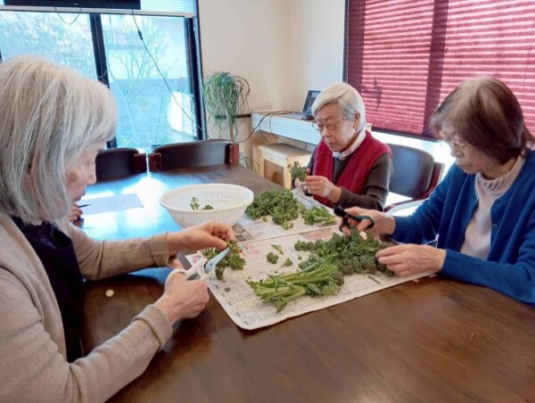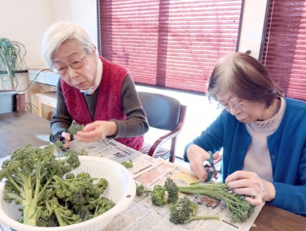 今日も朝一番はおとなりさん。体操でしっかり体を動かして元気に1日がスタートです。体操後は庭で野菜を収穫したり下ごしらえしたり、料理のお手伝いをして頂き、生活リハビリを励んで頂きました。