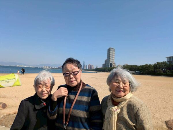 午後は皆さんお待ちかねのお出かけです。愛宕浜の西側へ行きました。天気よく暖かく能古島迄泳ぎたいくらい気持ち良い場所でした。