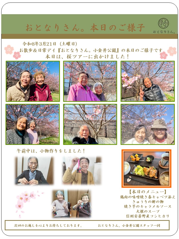 本日、おとなりさん。小金井公園では桜ドライブツアーに出かけました。