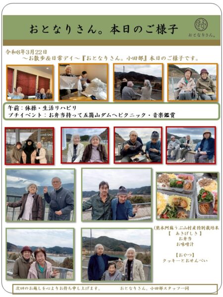 体操が終わると、本日はプチイベントでお弁当を作って、五箇山ダムへピクニックへ出かけました!