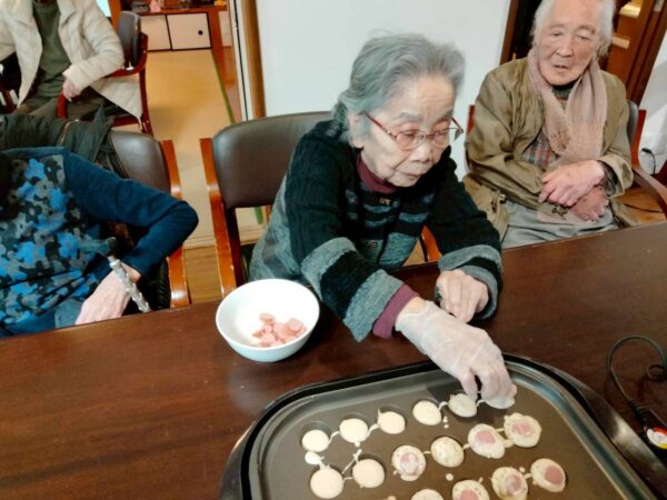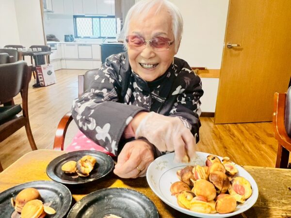 しかし、あいにく途中から雨が降ってきてしまいましたので、事業所に戻りおやつレクをしました。