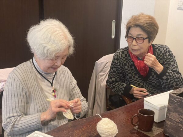 室内での活動は脳トレや編み物をしました。本日は編み物が人気でしたね。