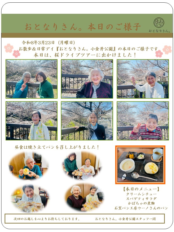 おとなりさん。小金井公園では桜ドライブツアーに出かけました。