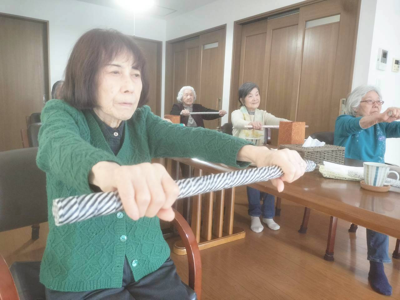 午前中は、棒体操で体をしっかり動かしましたね。 体操あとは水分補給も忘れずにお願いします。