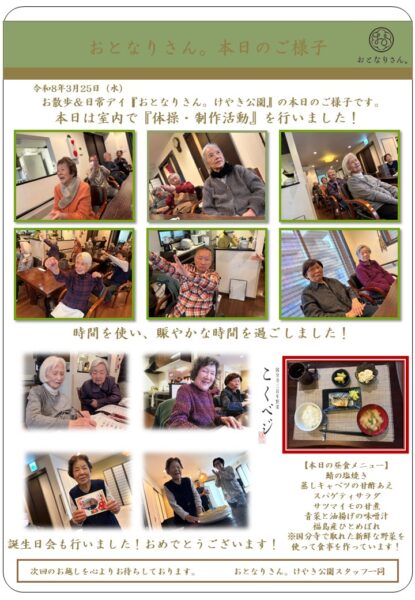 体操と 制作活動で 笑み浮かべ