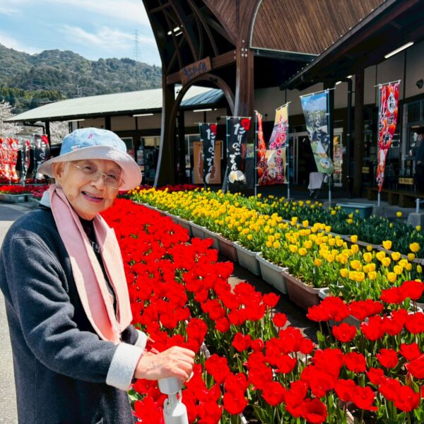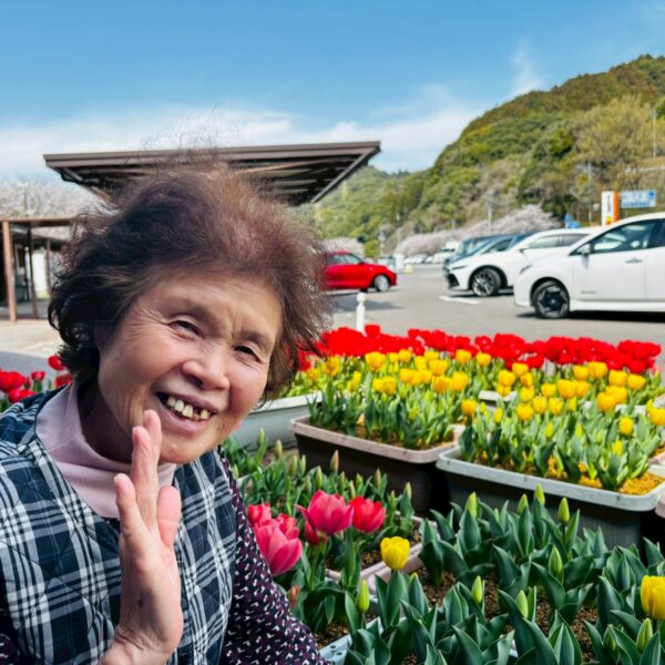 心配された桜の花も丁度見頃を向かており、玄関ではチューリップのお出迎えを受けました。