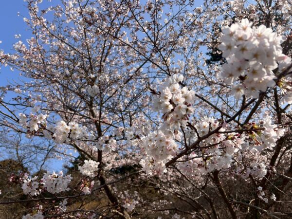 桜は場所に5分咲きです。風は冷たいですか、遠くまで展望は良かったです。