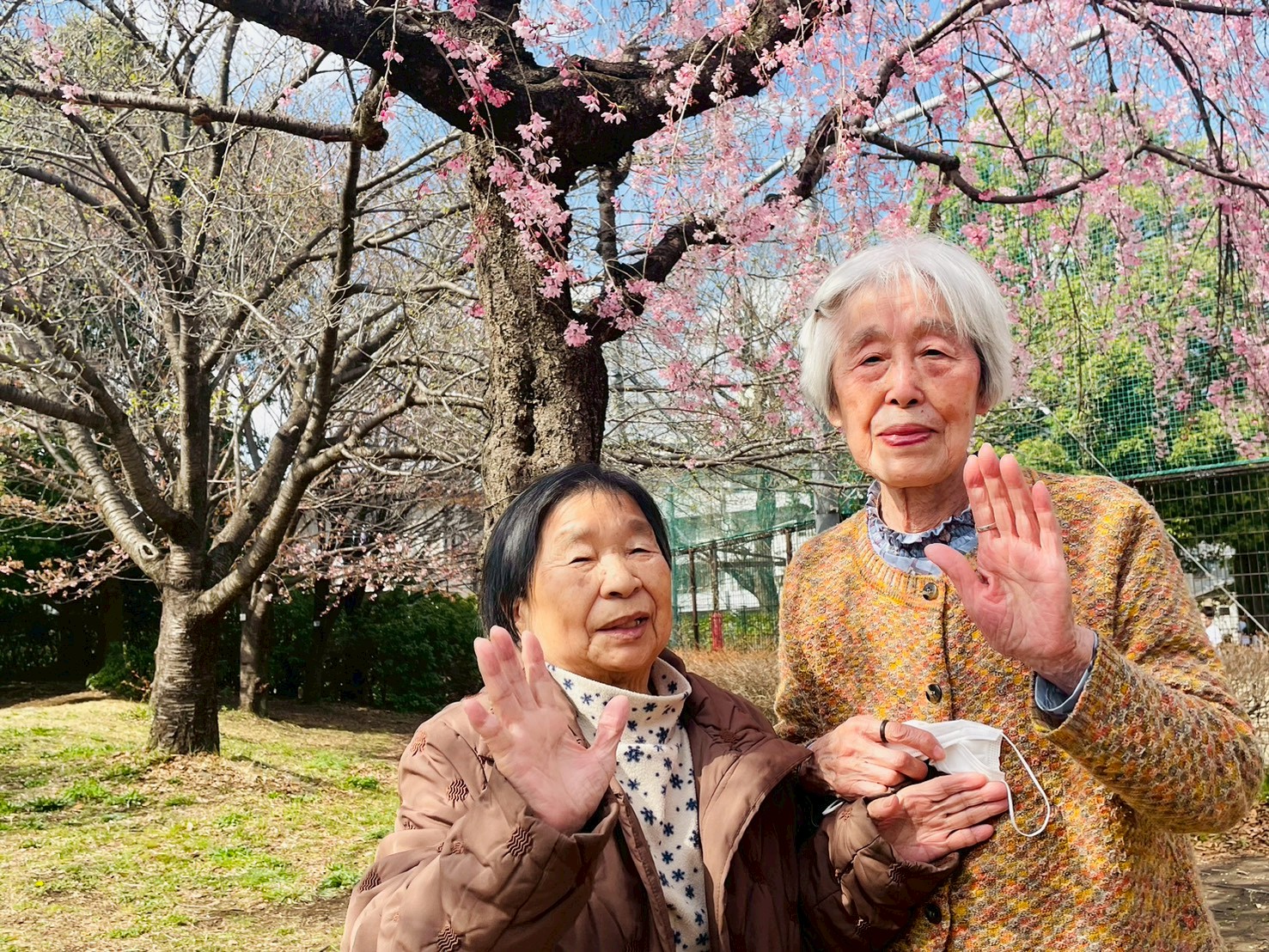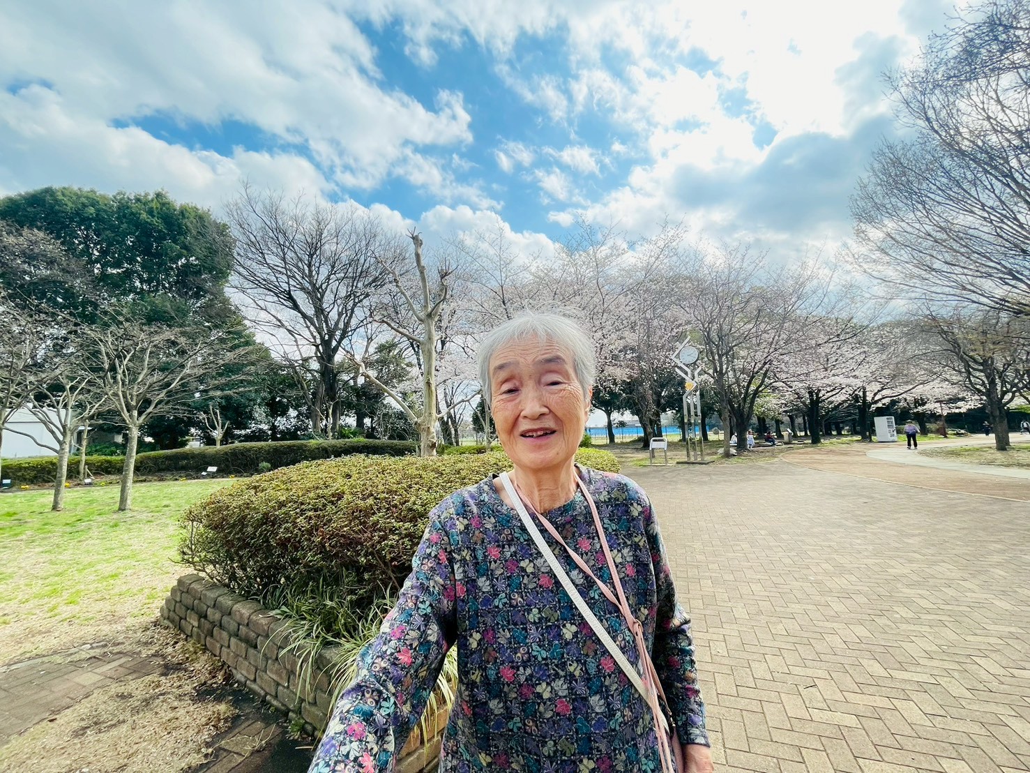 ソメイヨシノや枝垂れ桜が咲いていて綺麗でしたね。 春の陽気の中、歩行訓練を行いました。