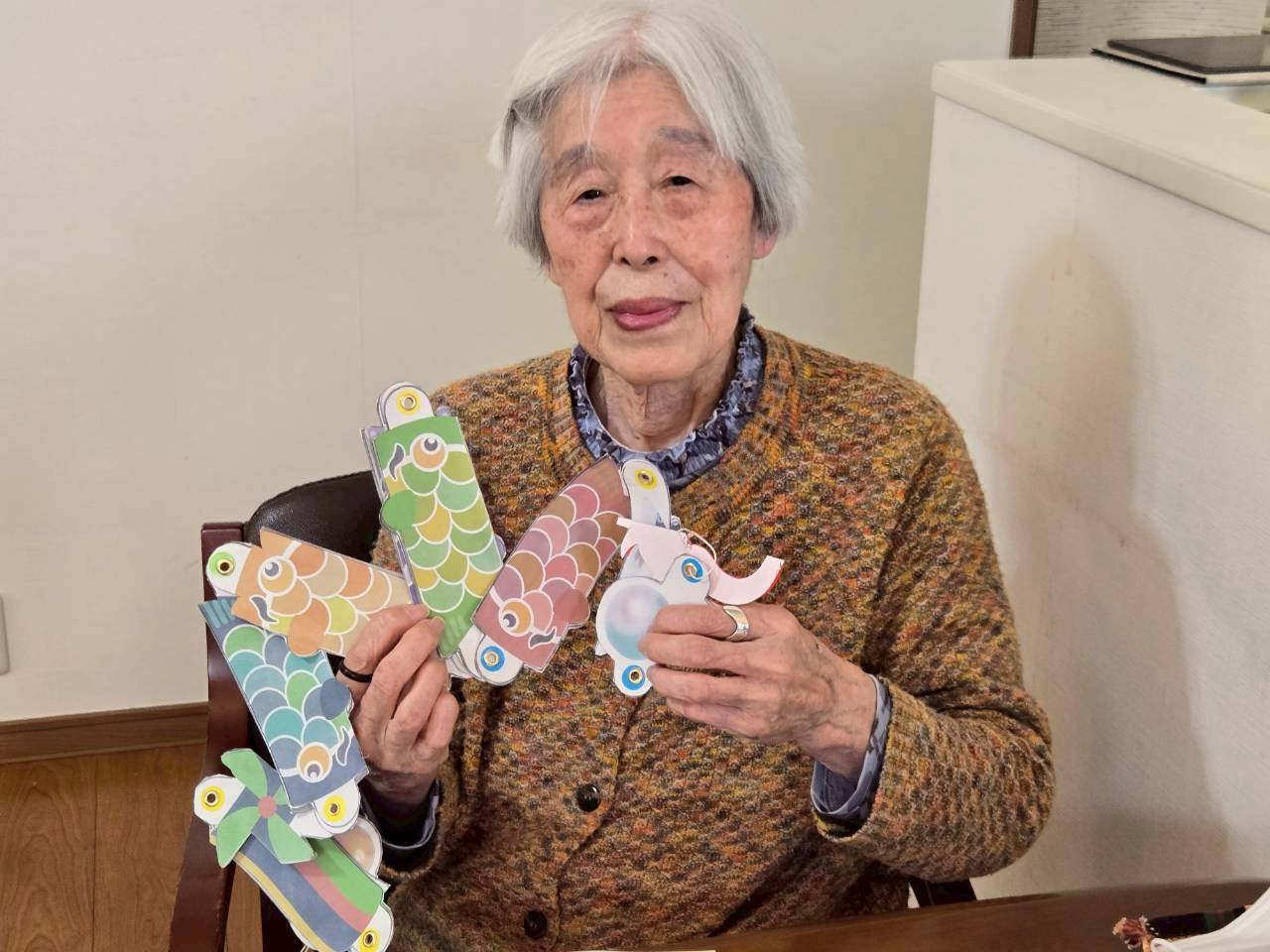 午前中は鯉のぼりのオーナメントを作りました。前回から作っていてやっと出来上がりましたね。