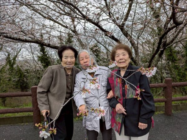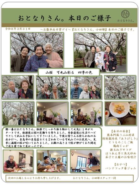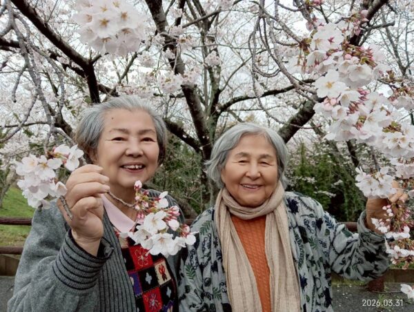 午後は皆さんお待ちかねのお出かけです。今日は糸島市の糸島富士とも言われている可也山でのお花見へ。見事に満開の桜が咲いておりました。