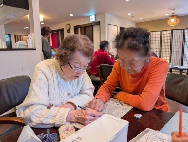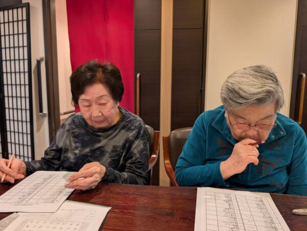 クロスワードや脳トレはとなりの方と相談しながら和気あいあいと進めておりました。