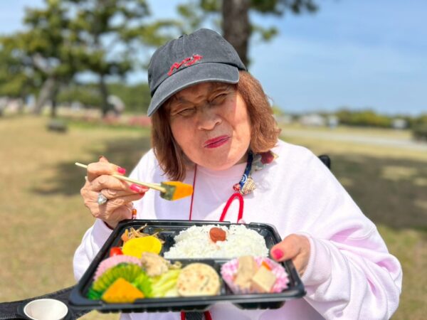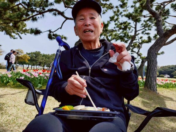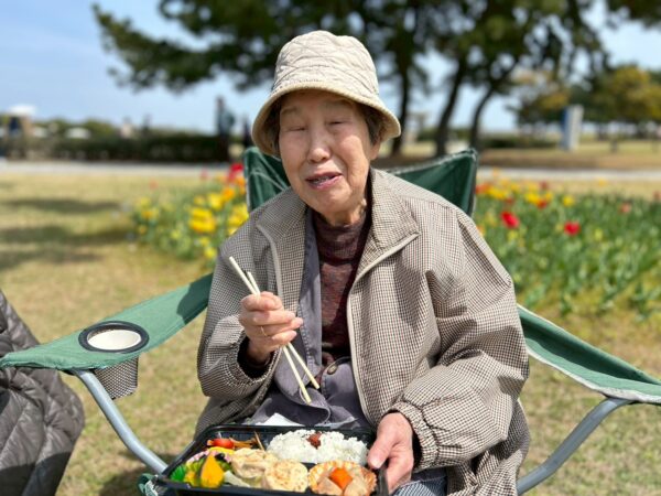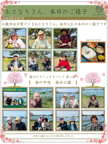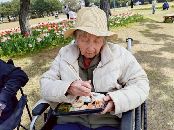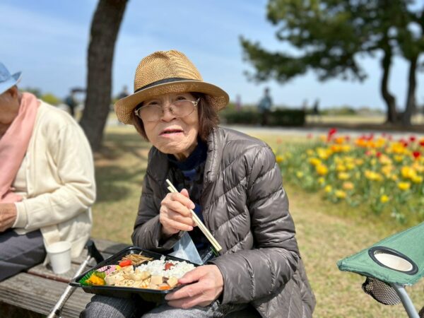 まず、海の中道海浜公園へ到着したら、美味しいお弁当を食べました。綺麗な景色、澄み切った晴れ渡る青い空、春の気持ちの良い空気を満喫しながら食べるお弁当は格別ですね。