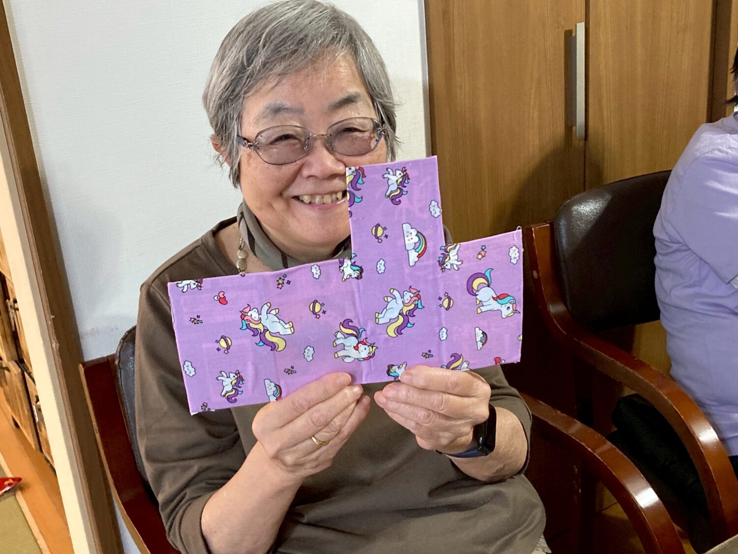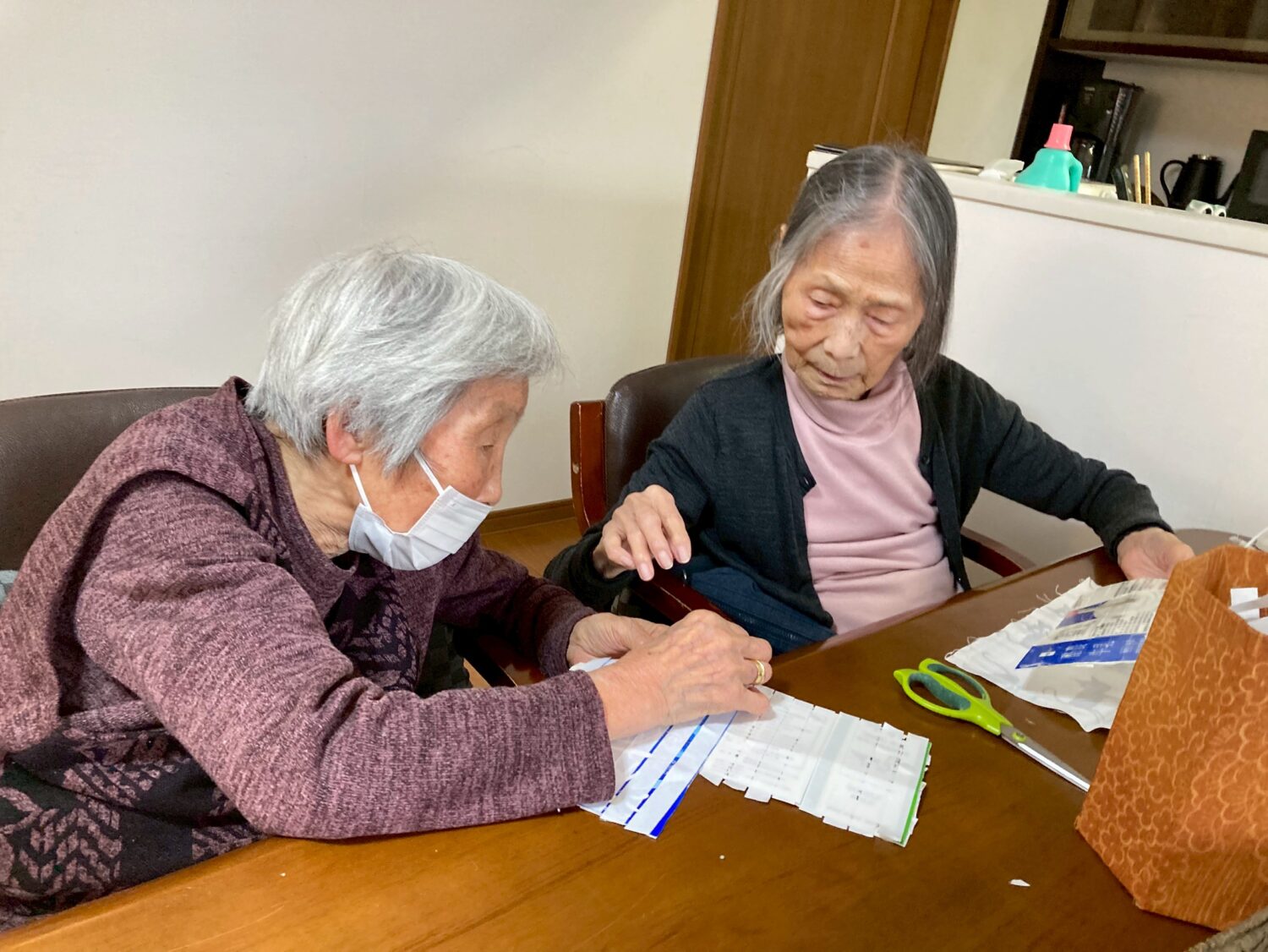 午前中は牛乳パックを使用して小物入れを作りました。お隣りの方と相談しながら作業を進めています。
