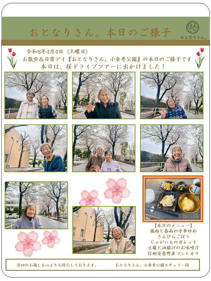 おとなりさん。小金井公園では桜ドライブツアーに出かけました。