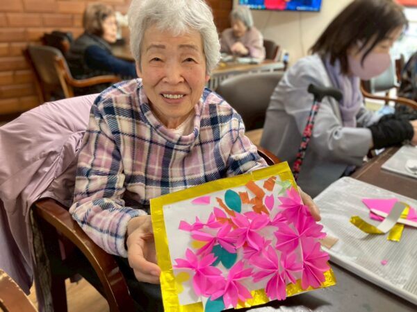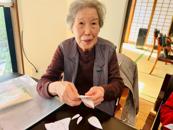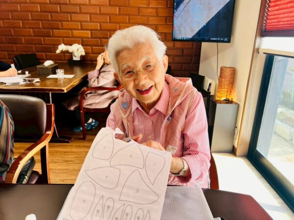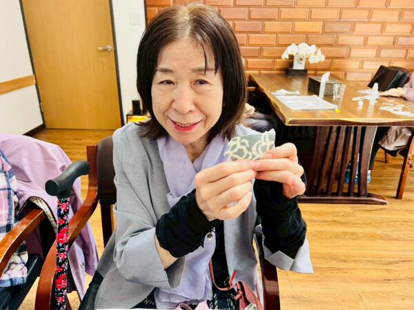 午前中の制作活動は、桜作りと型紙を切って筍作りをしました。