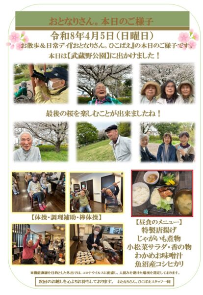 小金井市のデイサービス~お散歩&日常デイ~ おとなりさん。ひこばえ