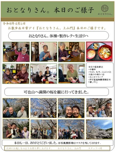 おとなりさん。では、午前中は制作に取り組まれ、午後から可也山へお出かけしてきました。