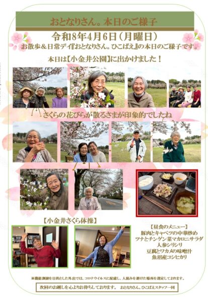 小金井市のデイサービス~お散歩&日常デイ~ おとなりさん。ひこばえ