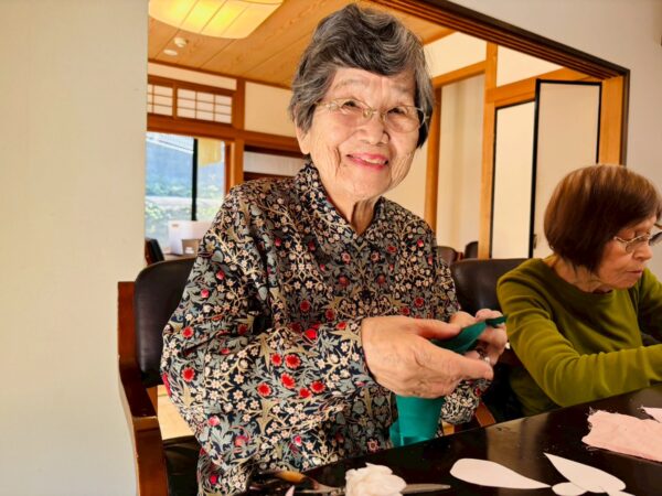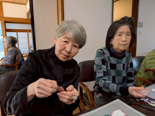 桜の制作もほぼ終わり、次のパッチワーク風のたけのこ作りが始まっています。