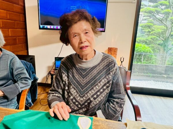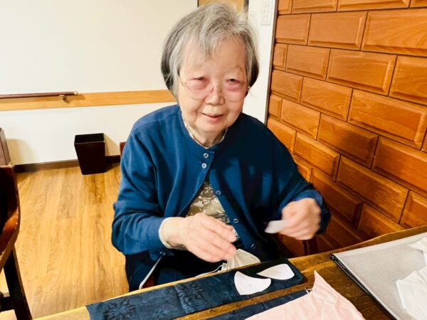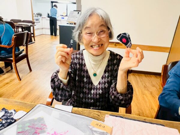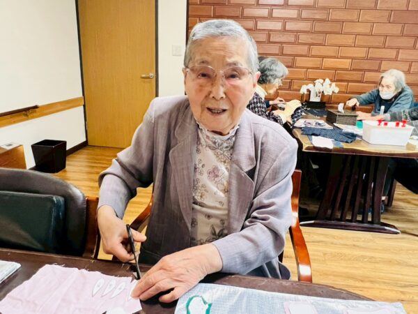 午前中の制作活動は、型紙と布を使って筍作りをしました。