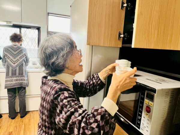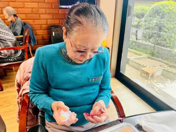室内組は、脳トレプリントをしたりおやつレクをしたりして