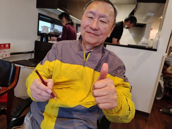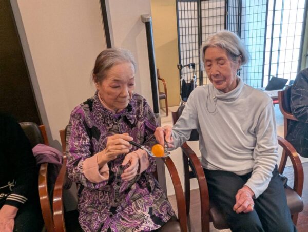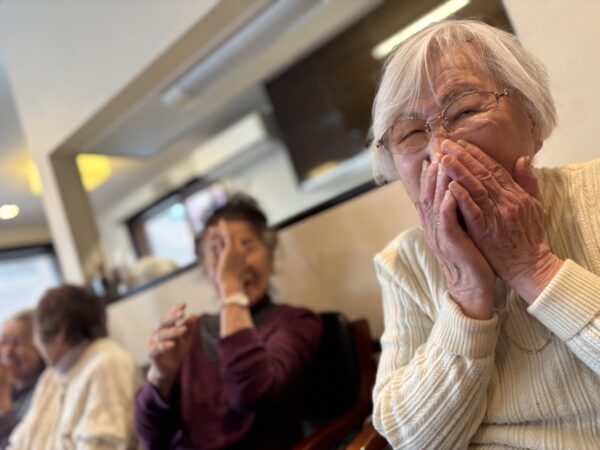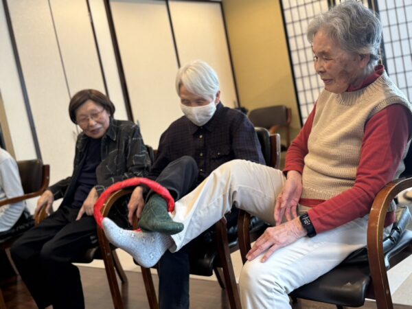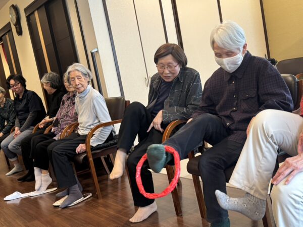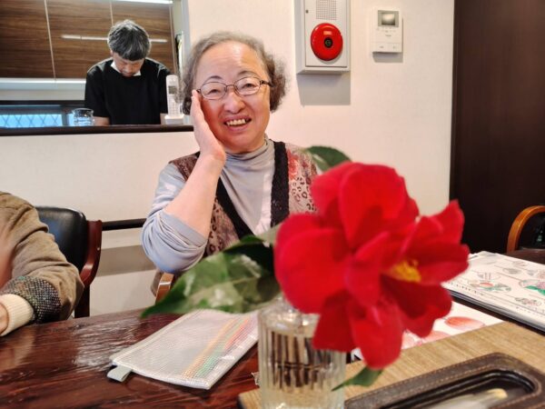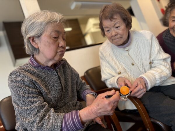 さて、本日も趣味制作活動からスタートです。編み物に切り絵、脳トレなど、皆様和気あいあい談笑されながら取り組まれました。