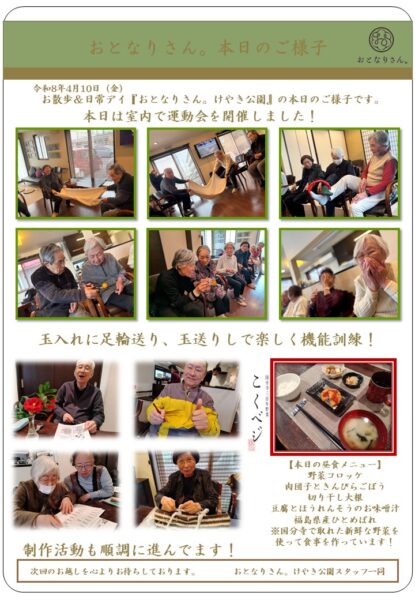 運動会が終わる頃には皆様汗ばむほどの活動量でした。、お散歩に引けを取らないくらいたくさん身体を動かしましたね。