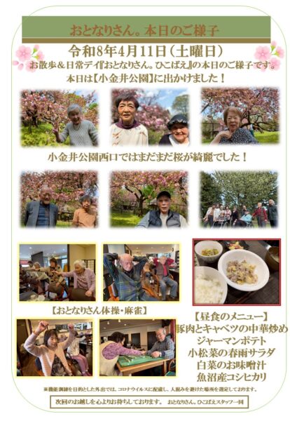 小金井市のデイサービス~お散歩&日常デイ~ おとなりさん。ひこばえ