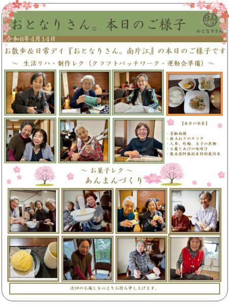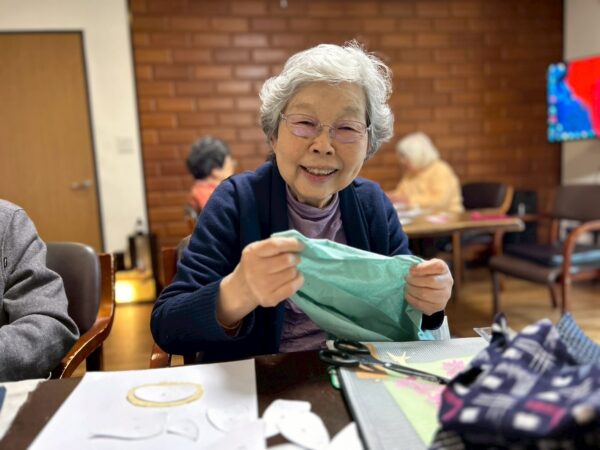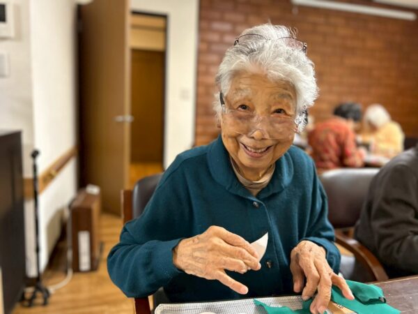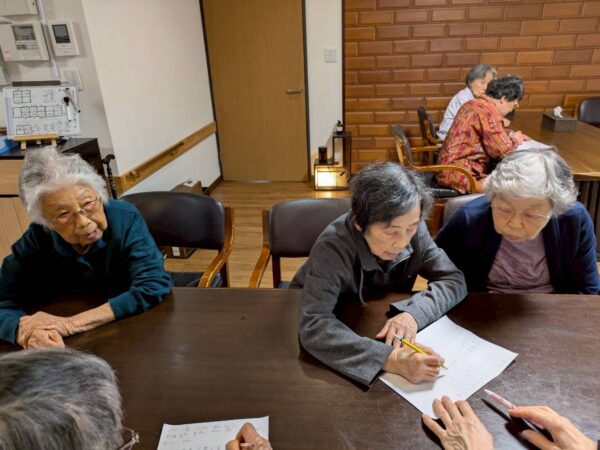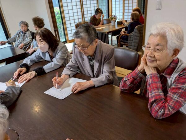 午後からは、あいにくの雨。脳トレとお菓子レクをしました。