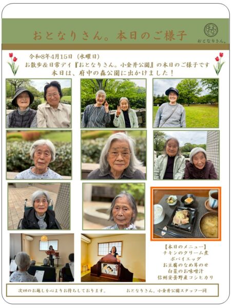 本日、おとなりさん。小金井公園では、