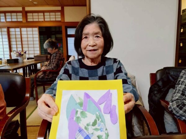 まず午前中は制作レクです。筍のパッチワーク風もだんだん完成に近づいてきましたね。