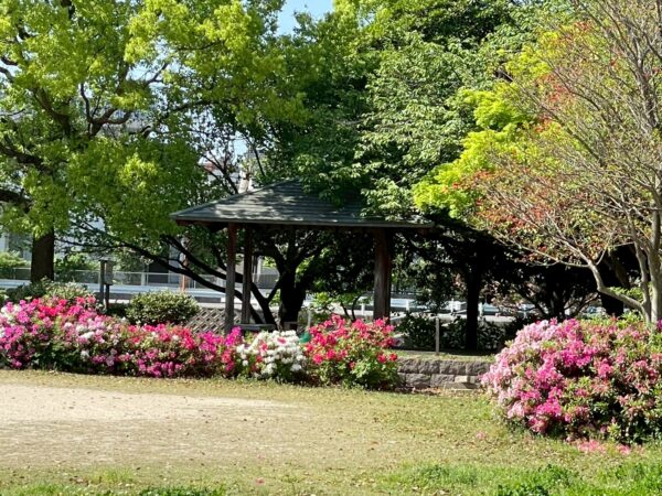 ツツジ咲く 眺めし友と 風清か