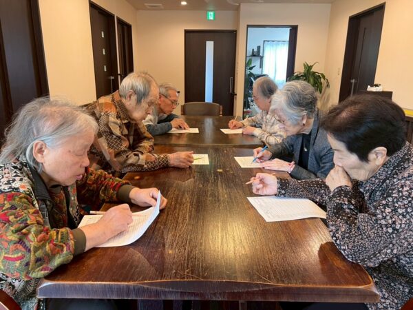 本日も体操でしっかり体を動かして元気に1日がスタートです。体操後は脳トレプリントで言葉の並び替えを行ない頭の体操もしっかり行ないました。