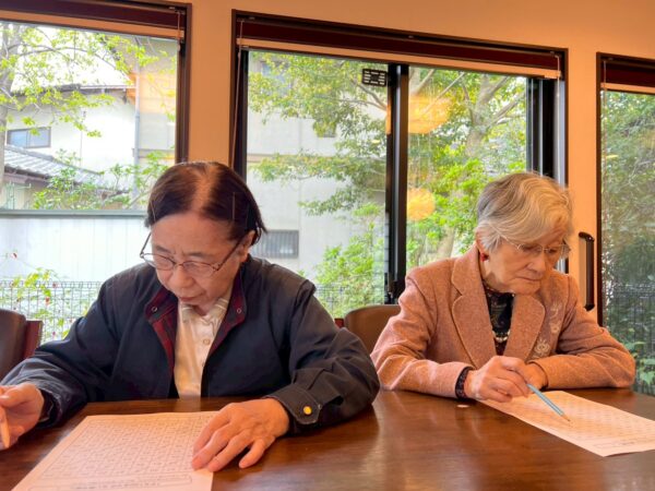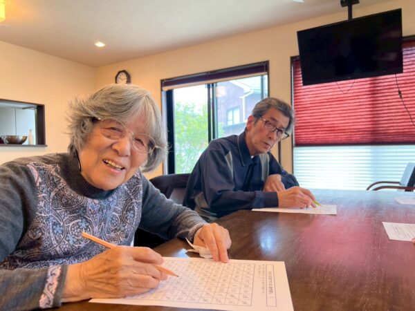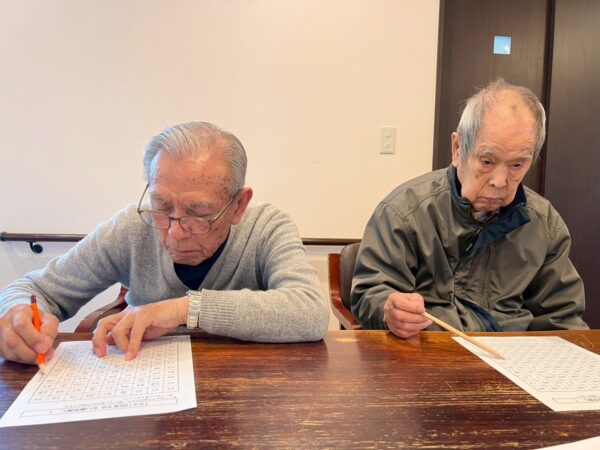 午前中の活動は制作の続きと脳トレを行いました。