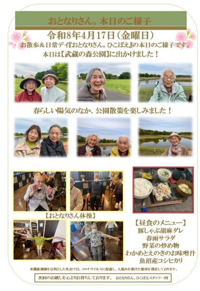 小金井市のデイサービス~お散歩&日常デイ~ おとなりさん。ひこばえ