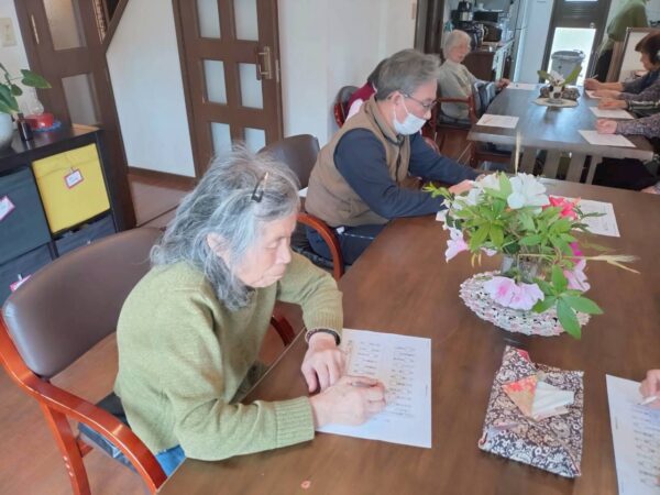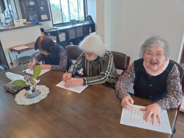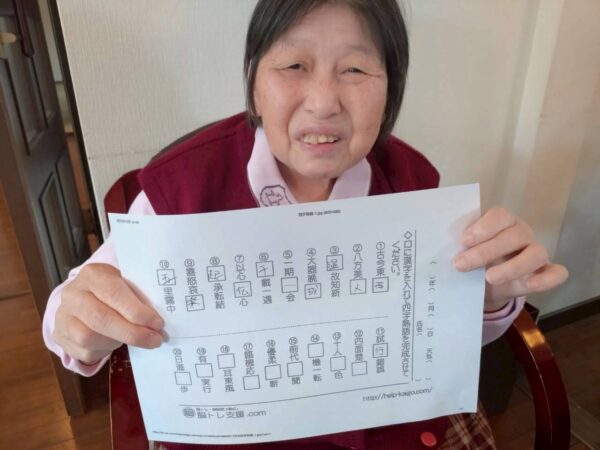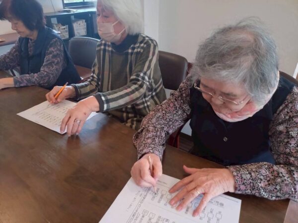 体操で身体をほぐして皆さん大好きな脳トレプリントで漢字の読み書きを四文字熟語などを使って頭も解しました。
