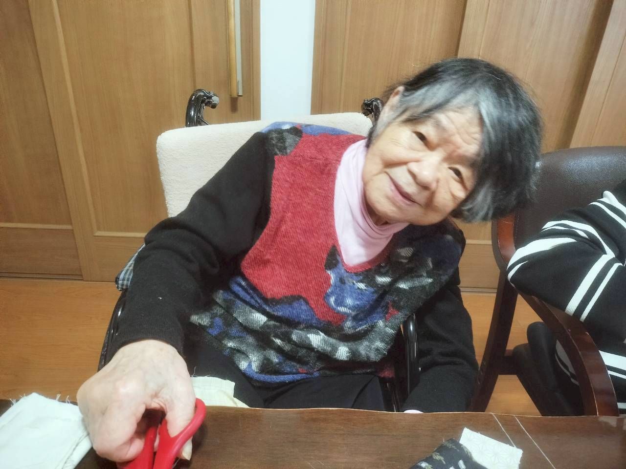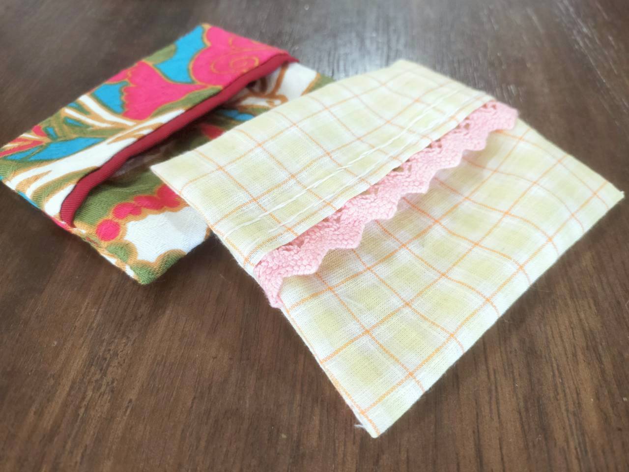 午前中はポーチやティッシュケースを作りました。針と糸を使い丁寧に縫ってくださっています。