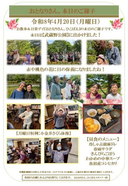 小金井市のデイサービス~お散歩&日常デイ~ おとなりさん。ひこばえ