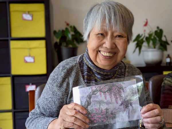 今日の制作は藤の花とツツジの水彩画です。